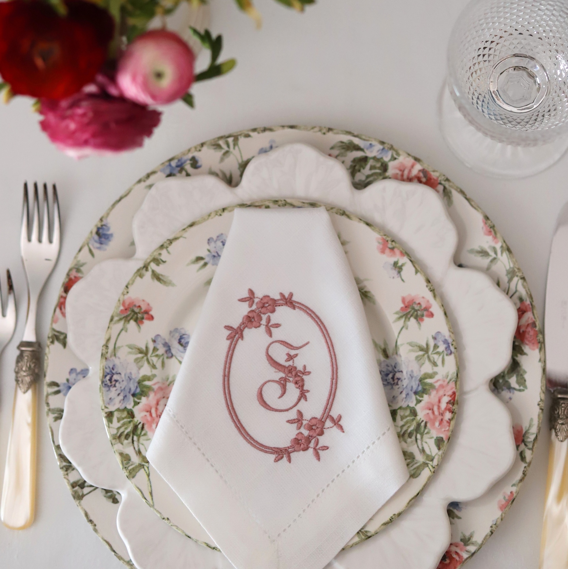 Guardanapo Monograma em Moldura Oval com 2 Ramos de Flores