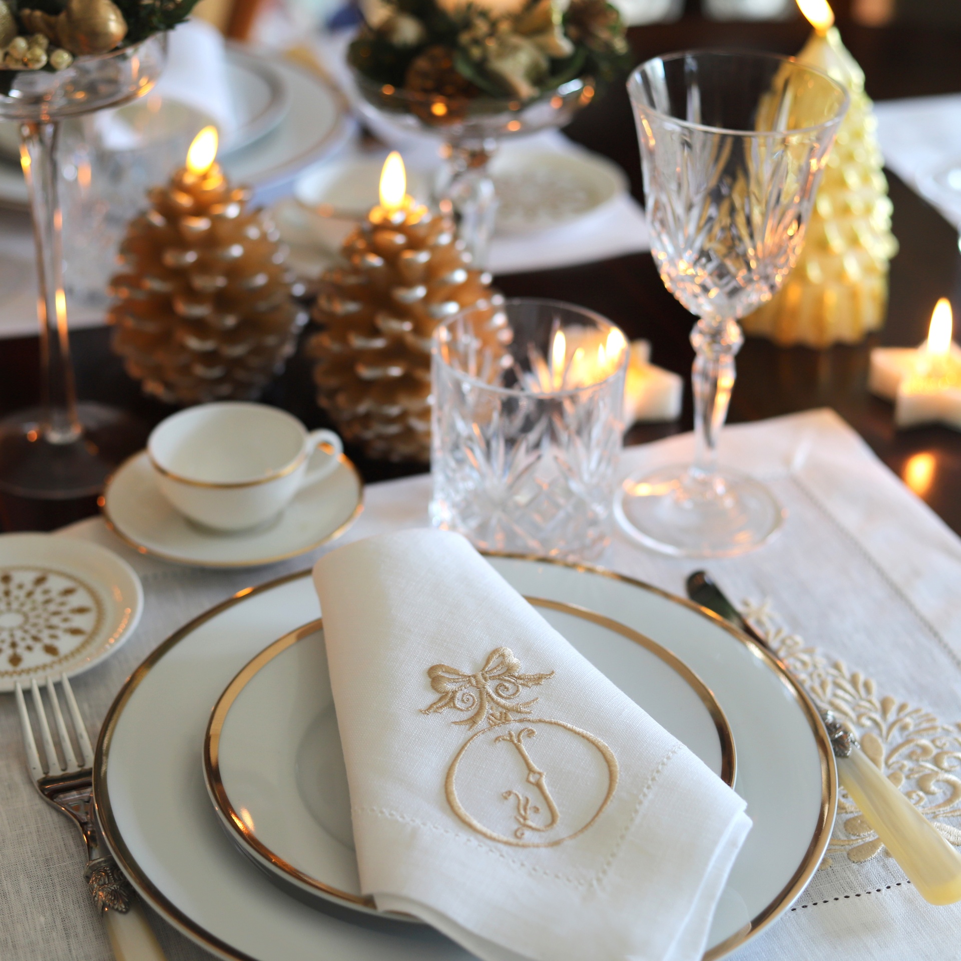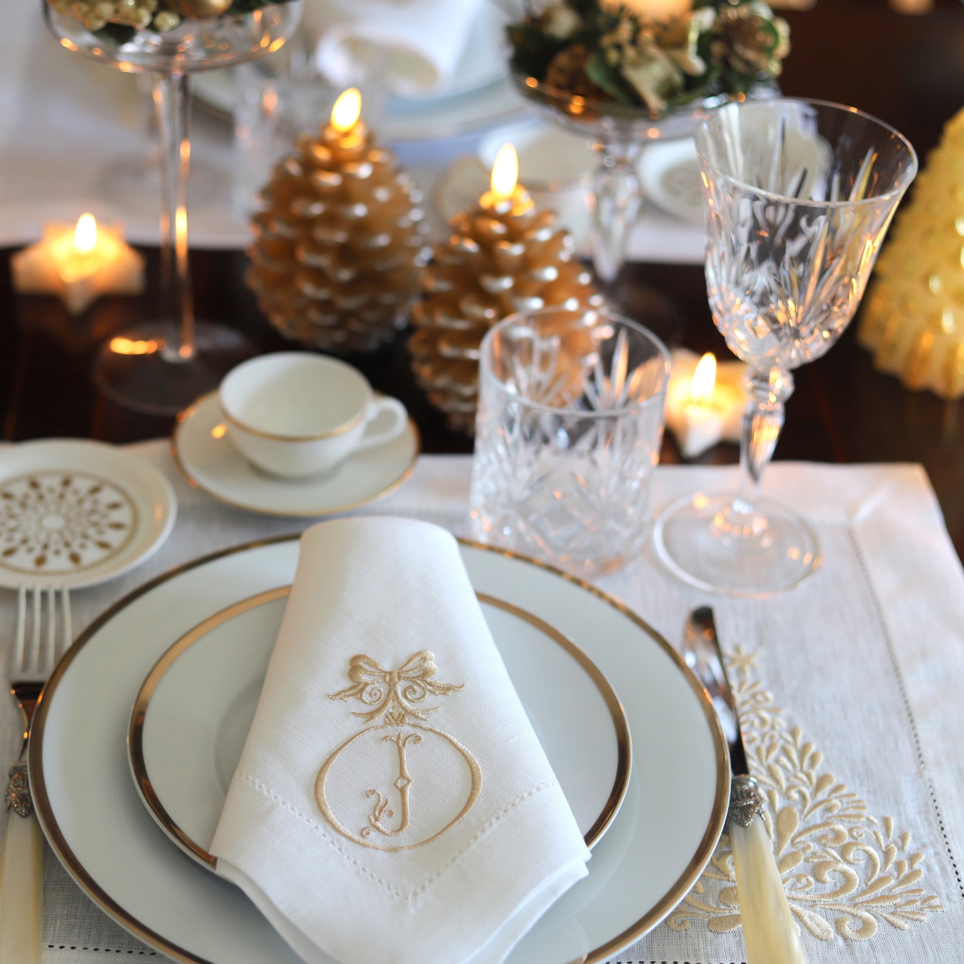 Conjunto Individual Árvore de Natal e Guardanapo Bola de Natal com 1 Letra