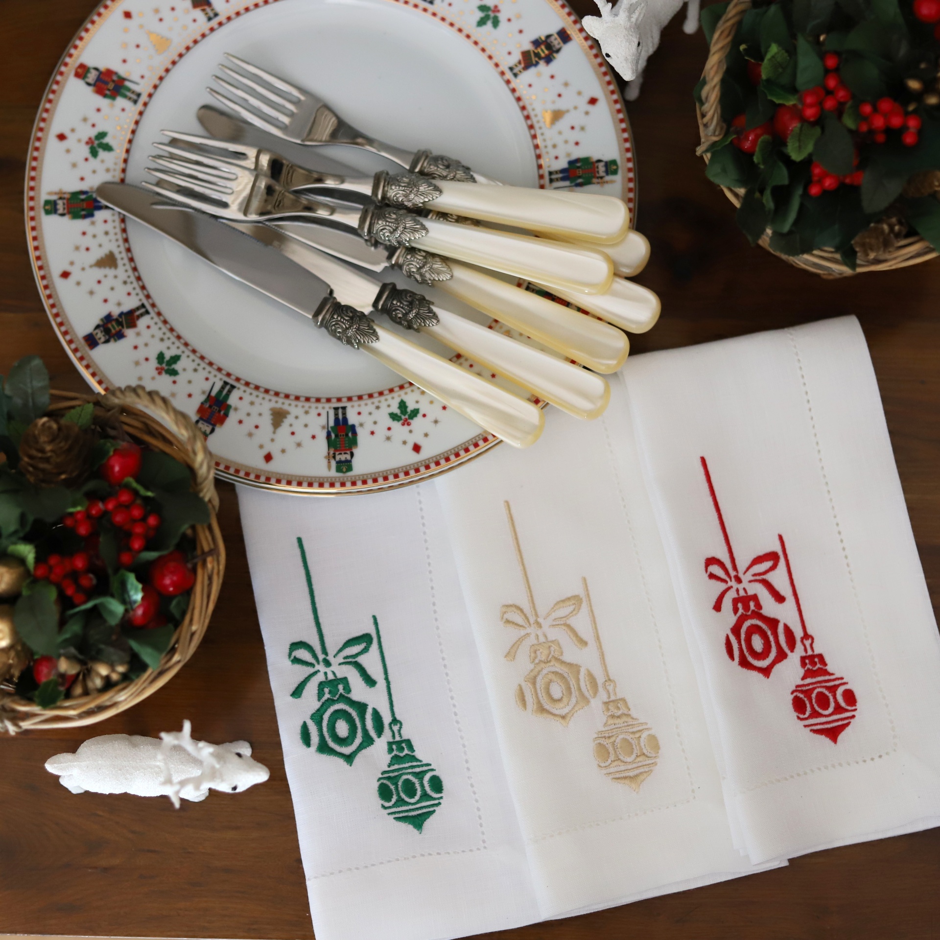 Guardanapos brancos de tecido com bordados vermelhos natalícios
