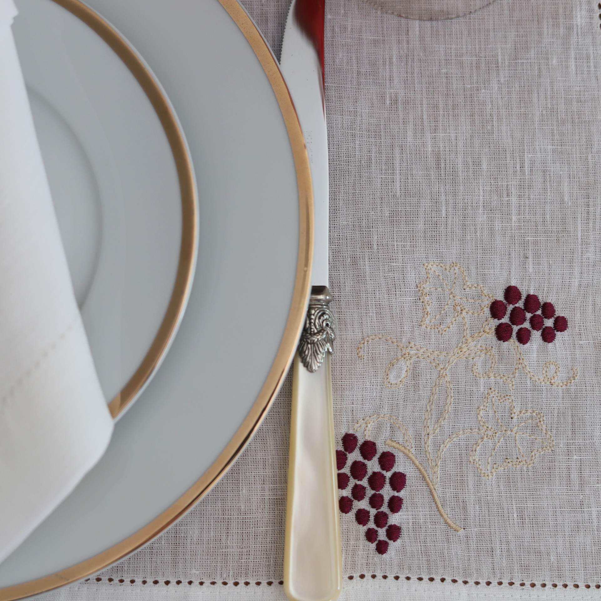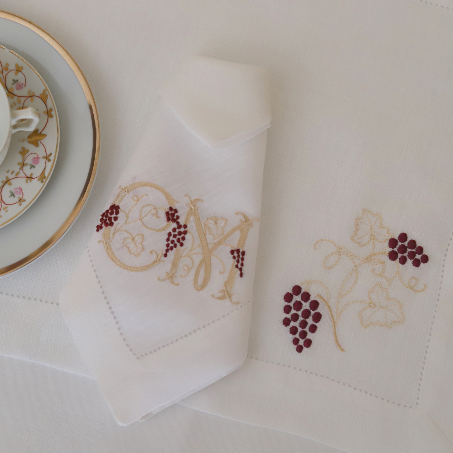 Conjunto Individual e Guardanapo Monograma 1 ou 2 Letras Uvas