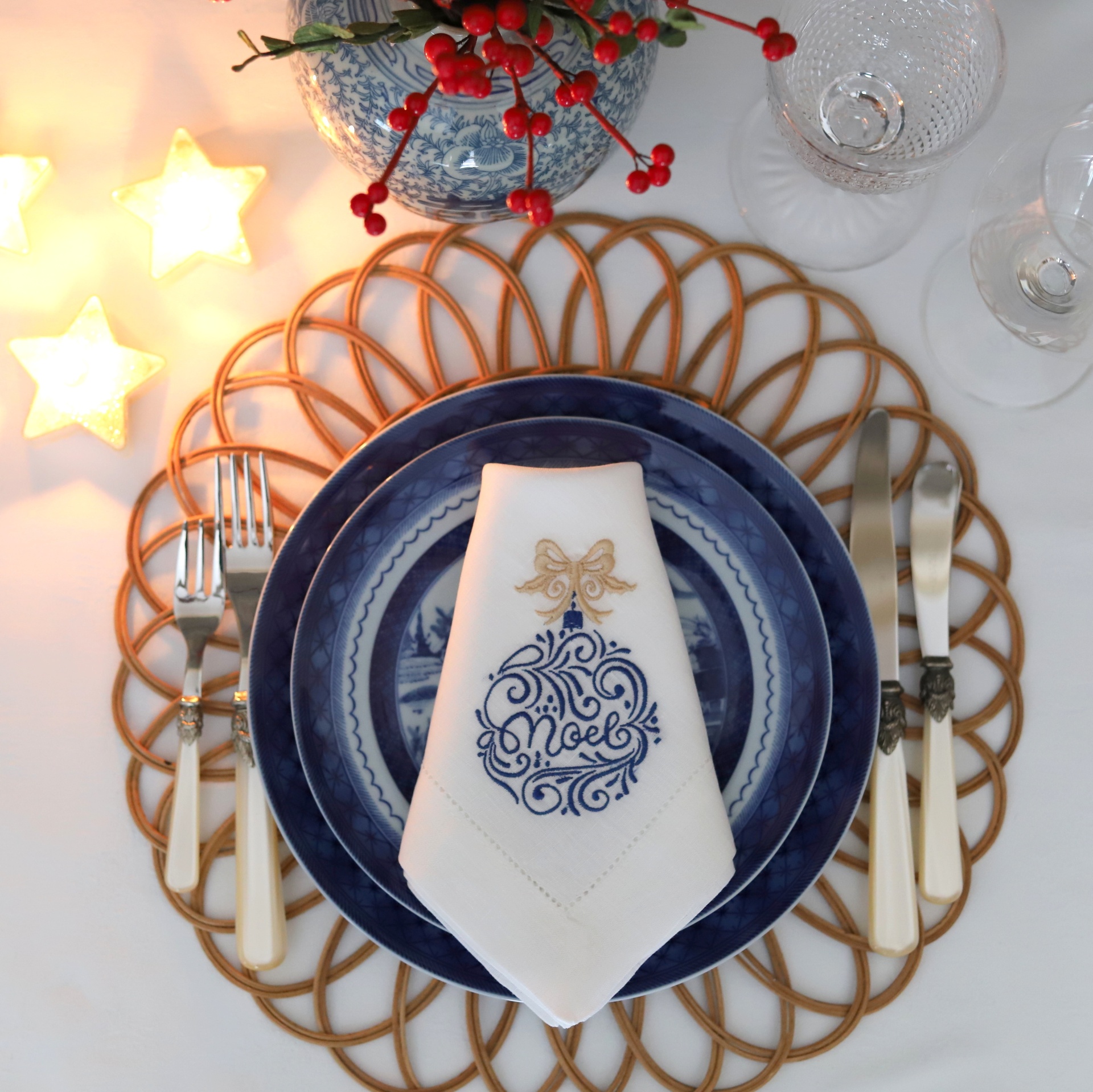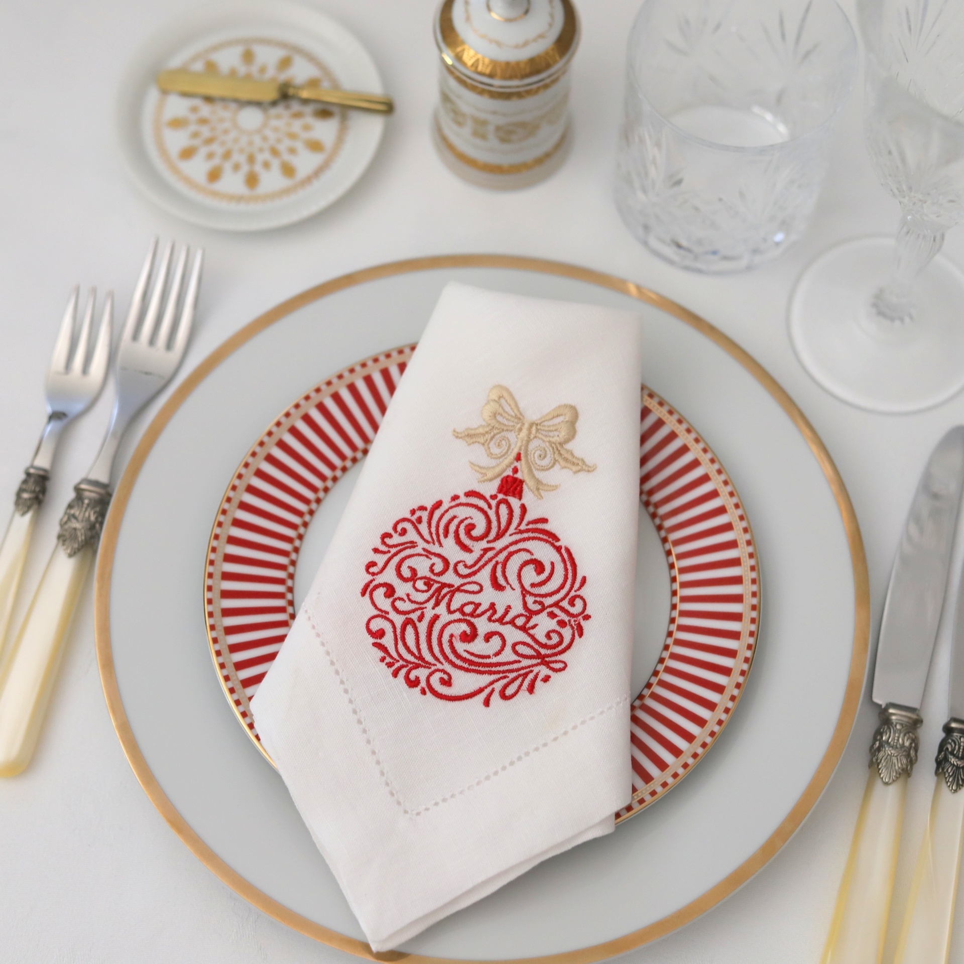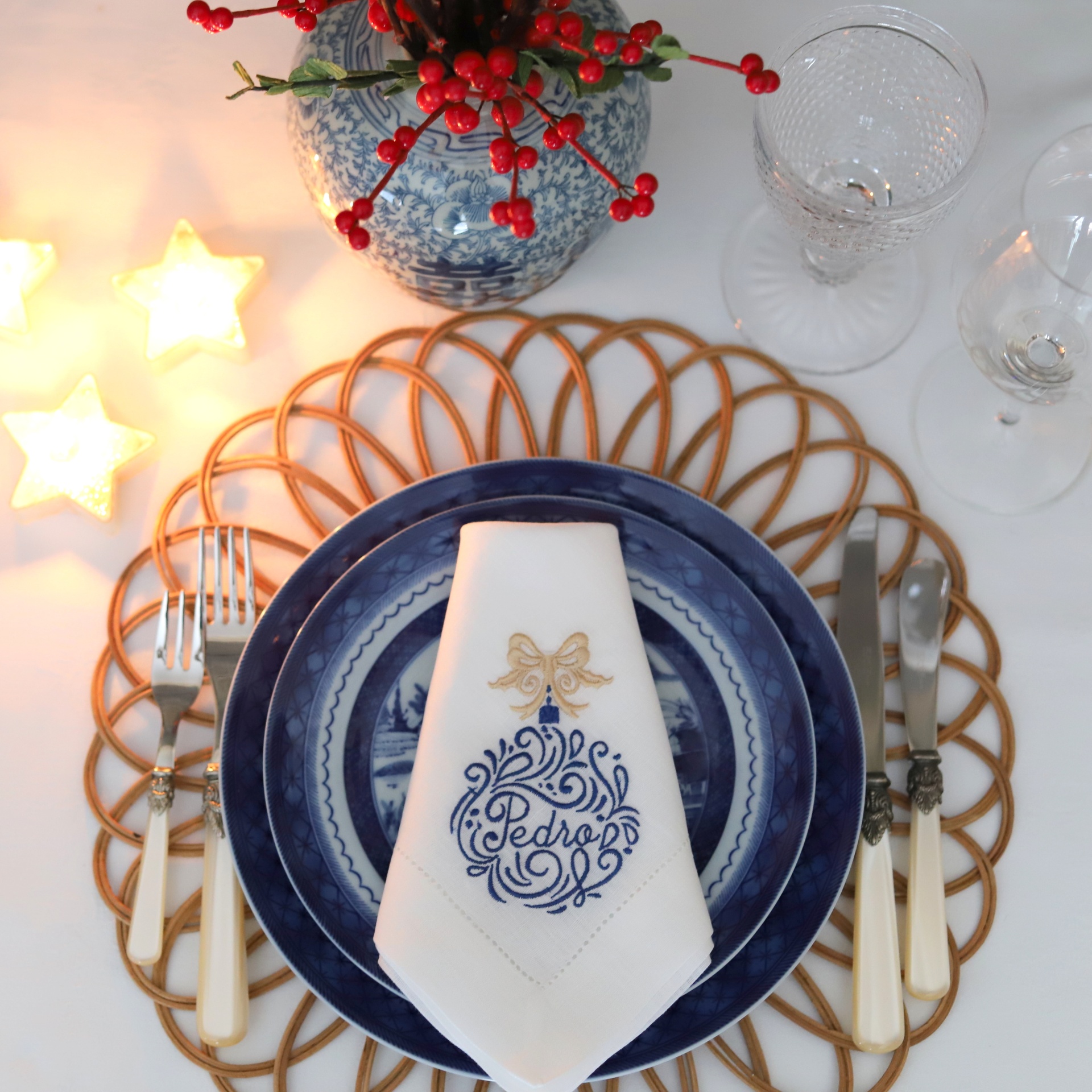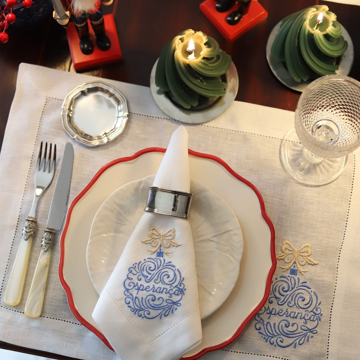 Guardanapo e Individual Bola de Natal com Palavra ou Nome e Laço Dourado 11,50 € Desconto de %. Partilhar Cor do Bordado Azul e Dourado Encarnado e Dourado Bordeaux e Dourado Artigo Guardanapo Individual Nome ou Palavra a Bordar Comprar Contactar Guardanapo com 45cm X 45cm, em linho de cor e bainha de 3 cm em ponto ajour. Toalha de mãos com 50cm X 80cm, em linho de cor branca e barra em algodão Vichy encarnado, ou tartan. Pode ser feito em qualquer cor. As cores do bordado podem diferir ligeiramente das cores das fotografias. Qualquer dúvida ou pedido especial, por favor entre em contacto pelo WhatsApp para o +351 917 27 27 29 (*) Antes de finalizar a encomenda, no quadro "Observações", caso não exista nas opções, indique a palavra a bordar. Artigo personalizável, dependendo do volume da encomenda e dos trabalhos em curso; a confecção pode demorar mais de 5 dias úteis (*) De segunda a sexta-feira, entre as 10h00 e as 18h00. Marca Napkin & Co Tags Natal Características