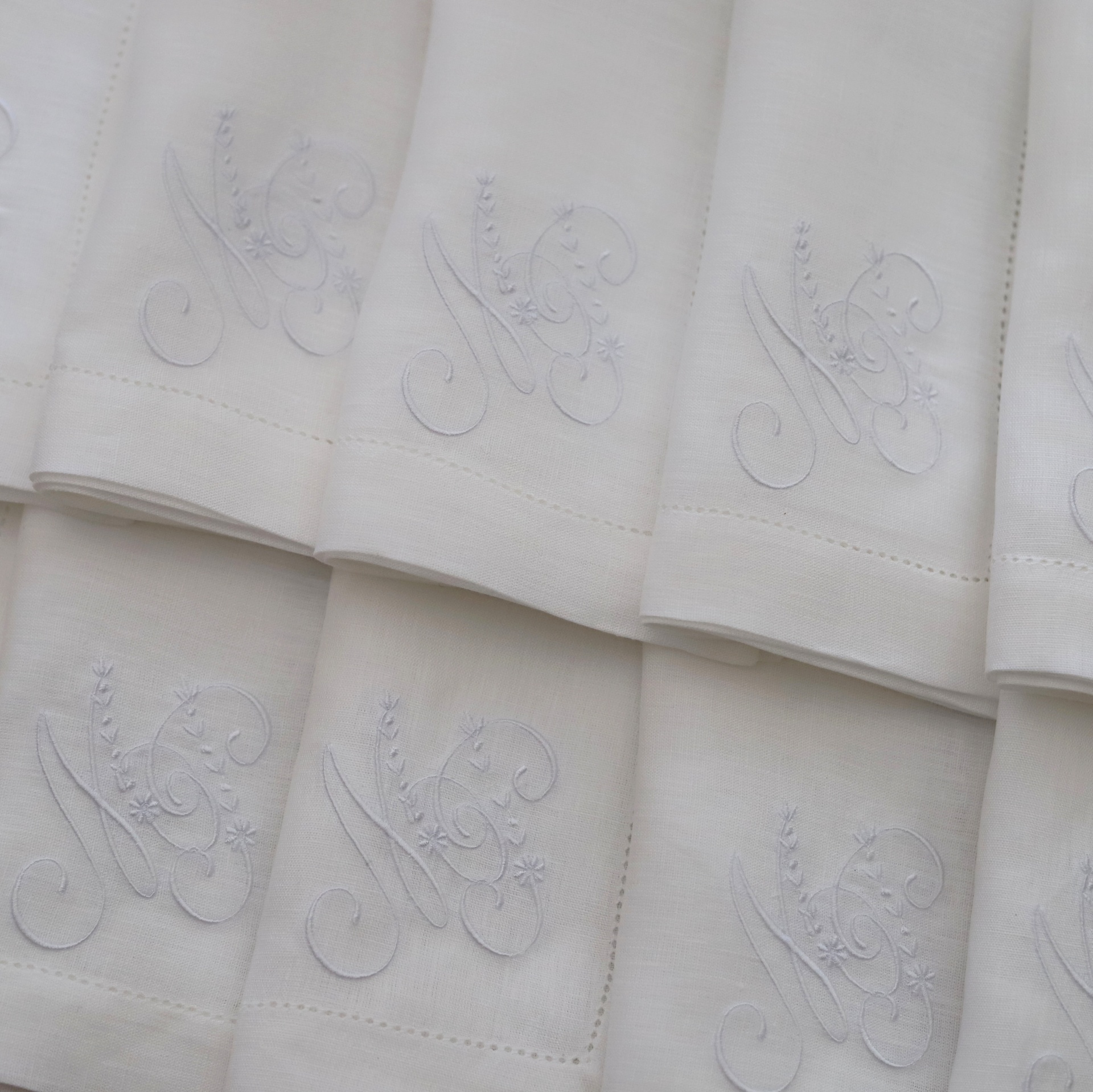 • Guardanapos de tecido branco com bordado monograma cinza