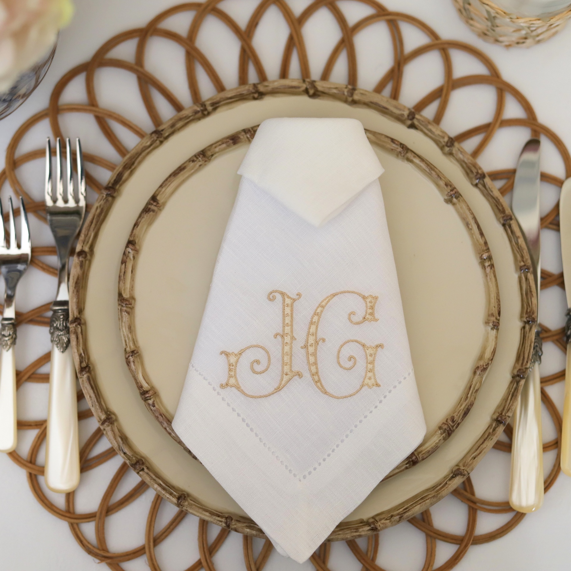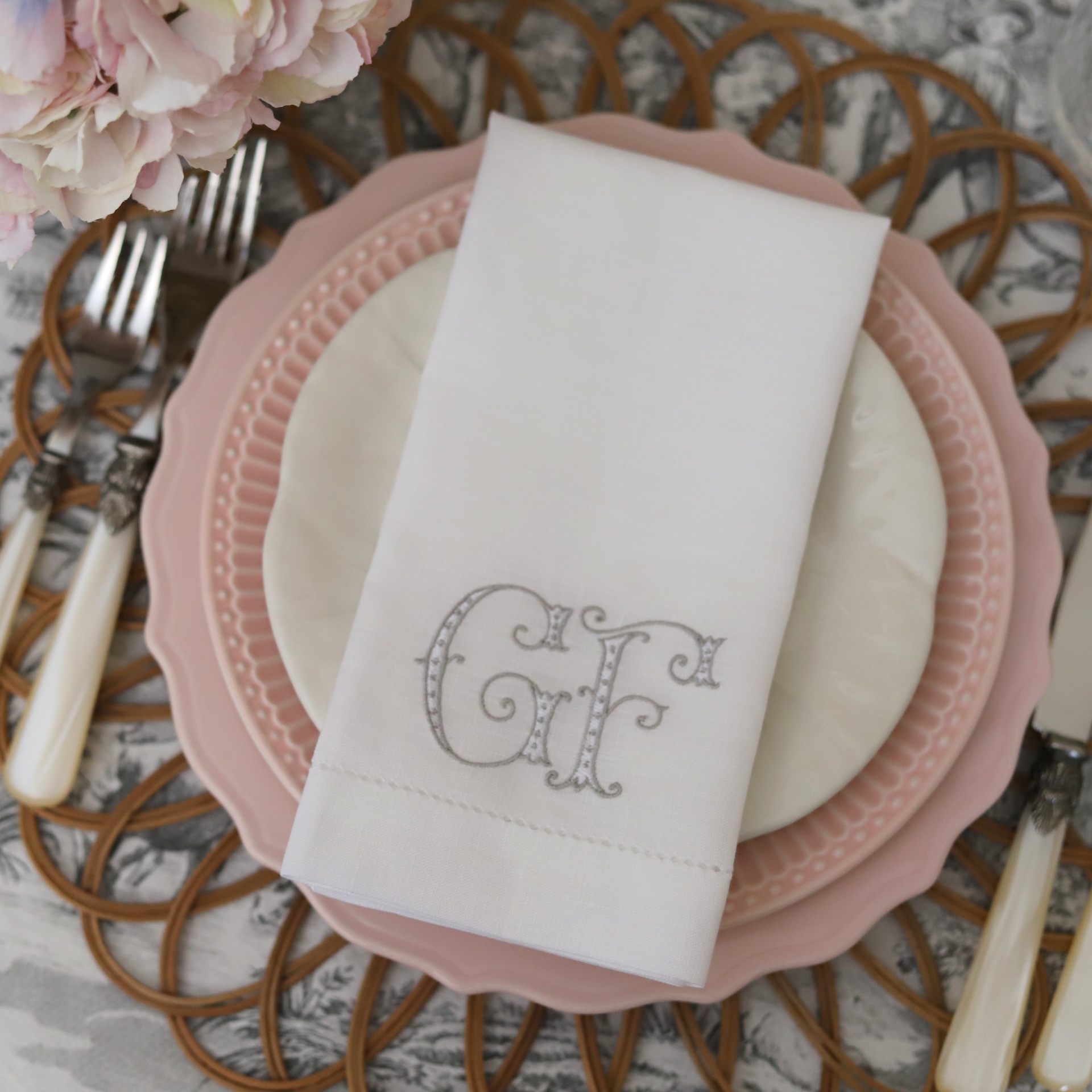Guardanapo Monograma de 1 ou 2 Letras com Bolinhas