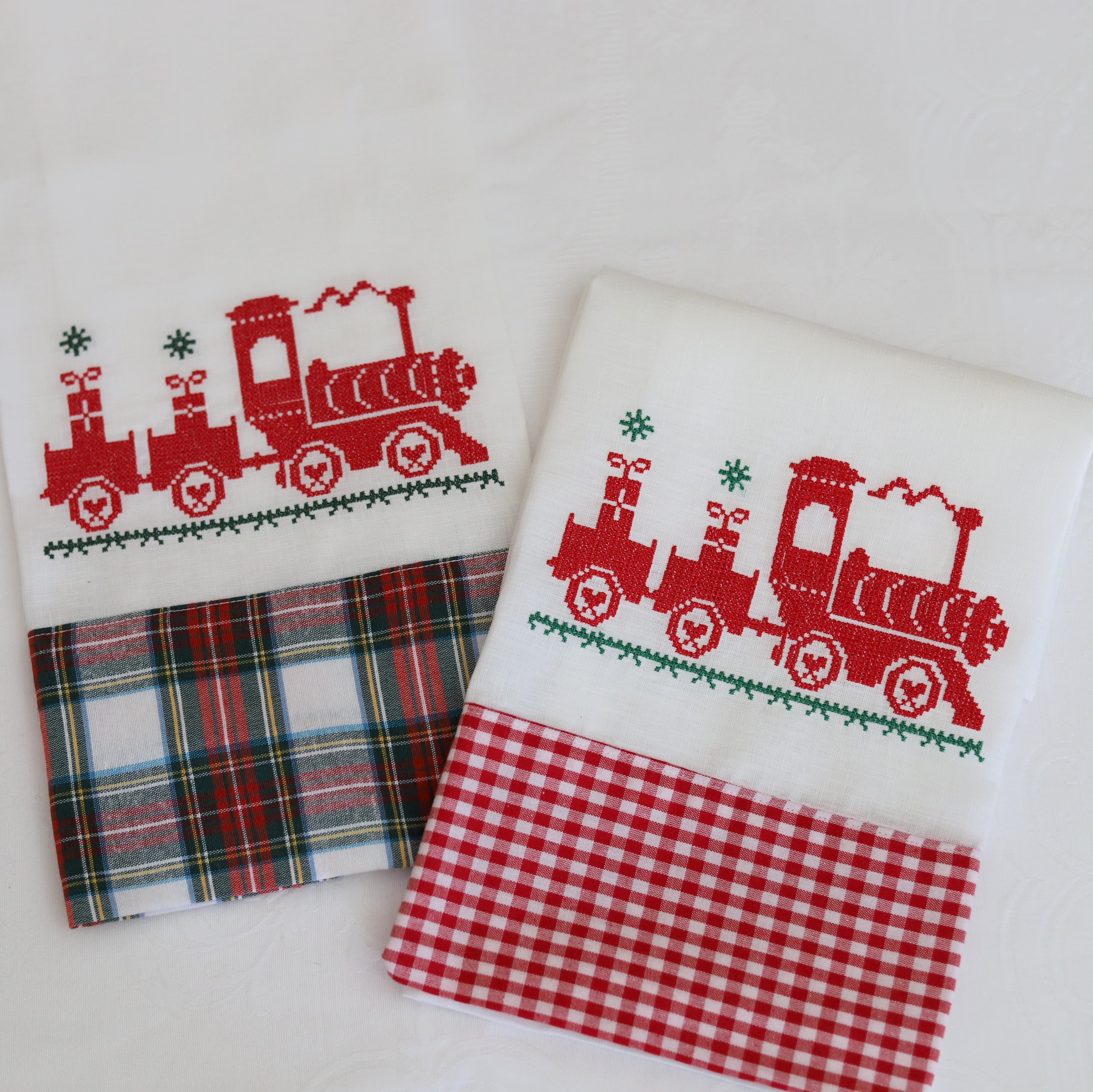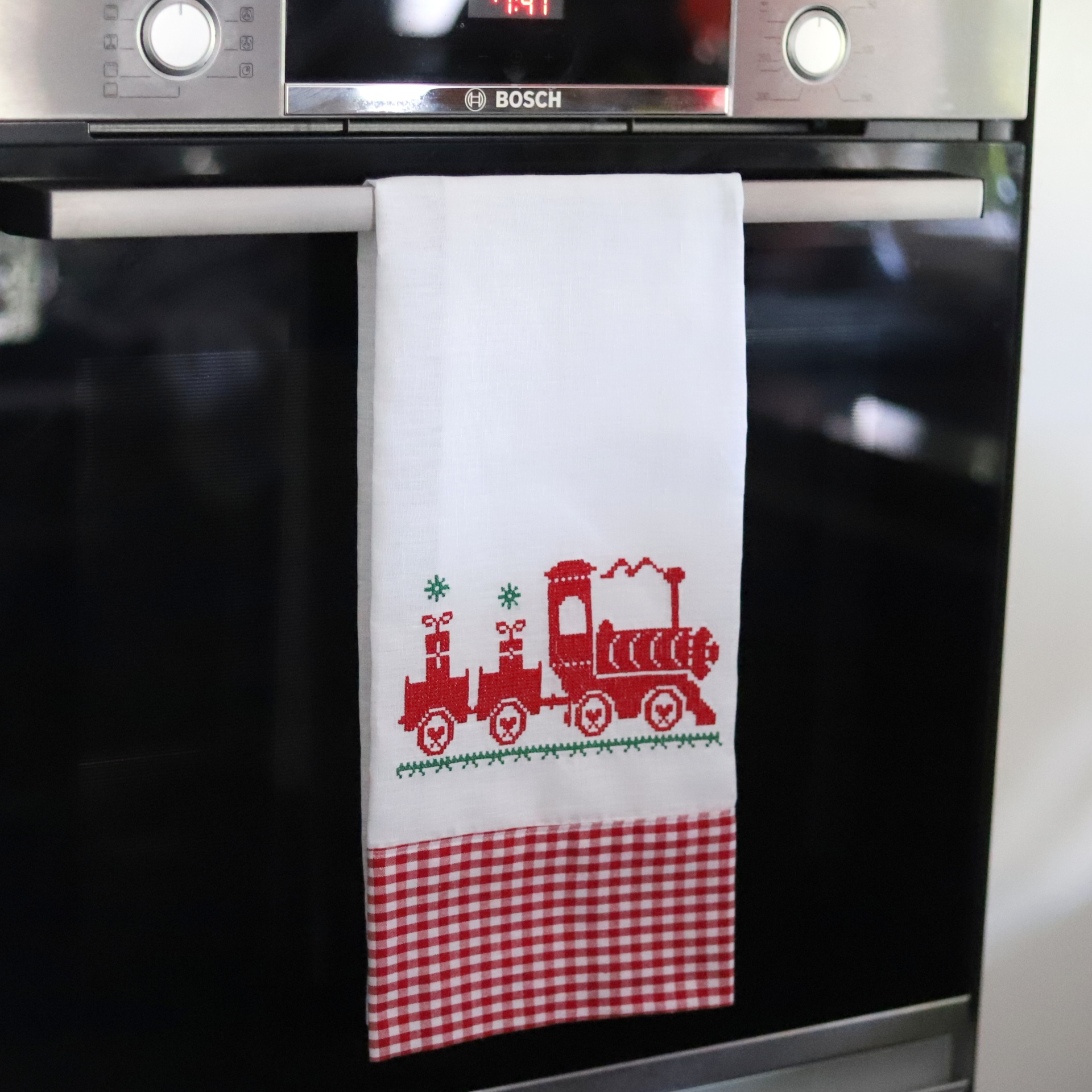 Toalha de Mãos/Pano de Cozinha Comboio em Ponto Cruz